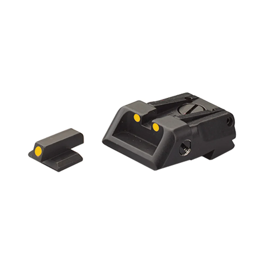 La conception soignée de la hausse et du guidon assure une acquisition de cible rapide et précise, même dans des conditions de faible luminosité. Avec une largeur de queue d’aronde de 8,50 mm pour la hausse et 8,00 mm pour le guidon, cet ensemble garantit un alignement parfait et cohérent.